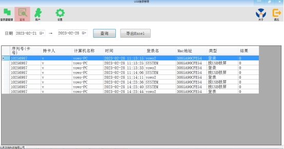 4。?點(diǎn)擊查詢按鈕進(jìn)入登錄記錄查詢界面