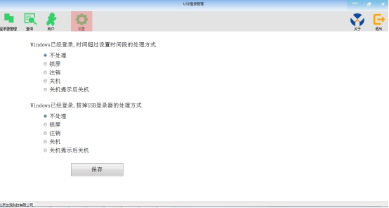 點(diǎn)擊設(shè)置按鈕,可以配置超出時(shí)間段和拔出USB登錄器時(shí)計(jì)算機(jī)要執(zhí)行的操作