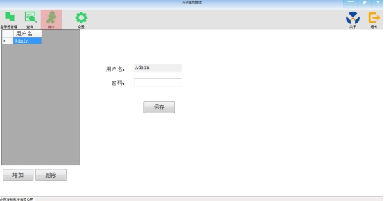 進(jìn)入主界面后,點(diǎn)擊用戶管理模塊,選擇用戶名Admin,?在右側(cè)輸入新密碼,然后點(diǎn)擊保存。?也可以增加新的用戶名和密碼。