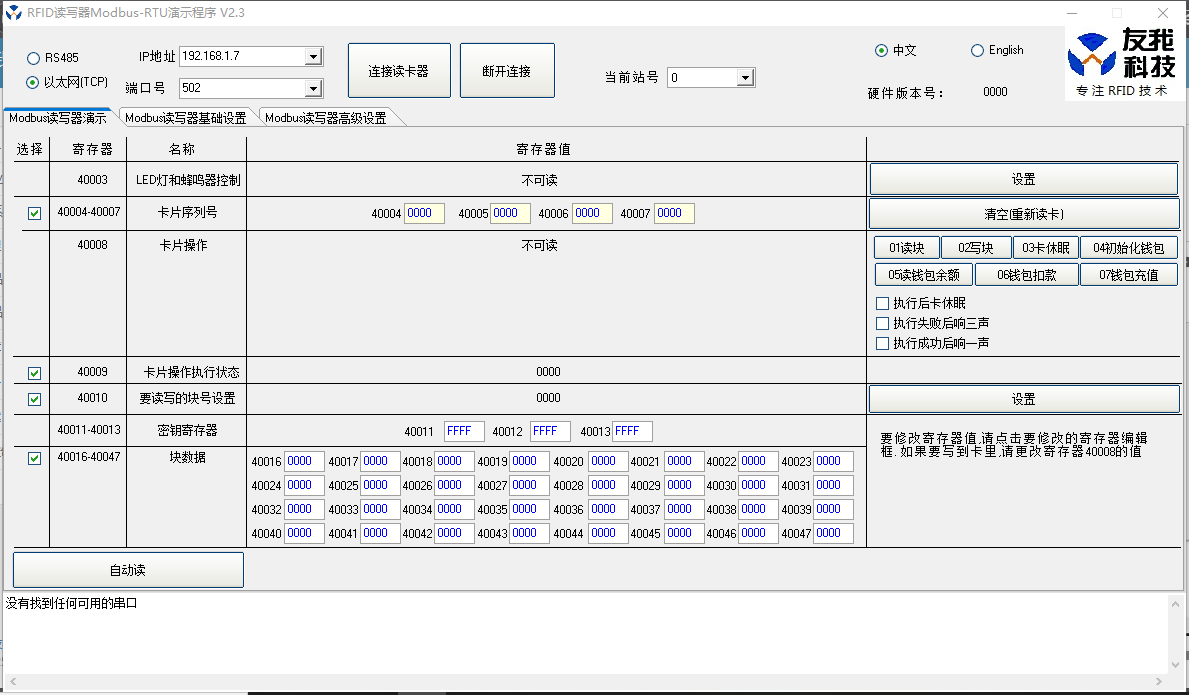 支持Modbus協(xié)議的IC卡讀卡器開(kāi)發(fā)包和配置程序,