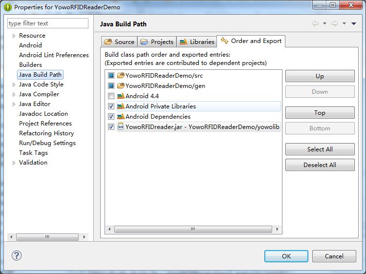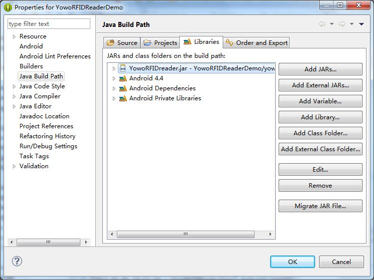 在ADT工程中導(dǎo)入yoworfidreader.jar庫(kù)文件,即可在工程中引用NFC讀寫器的類文件