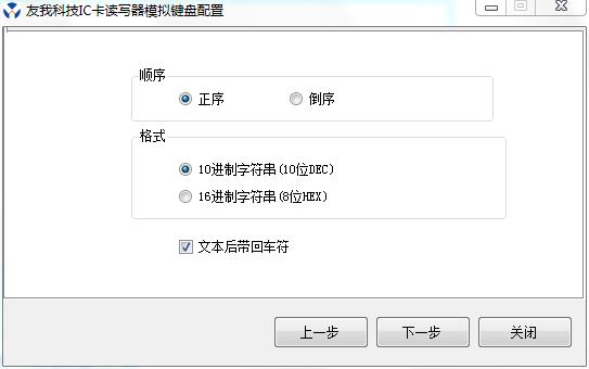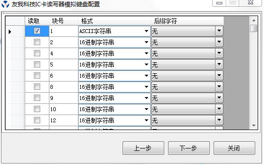 ?軟件模擬鍵盤輸出類似于第一種方案,但是在第一種方案上做了許多升級。不僅可以自己配置卡號輸出的格式,例如10DEC或者8HEX,還可以配置M1卡塊數(shù)據(jù)的輸出格式,可以配置HEX格式或者字符串格式,例如將某個塊數(shù)據(jù)寫成""10008""字符串,刷卡時可以直接輸出""10008""到光標(biāo)處,不僅支持數(shù)字,英文,還支持中文字符的,例如寫入""友我科技"",刷卡時即可輸出""友我科技""到光標(biāo)處。這是第一種讀卡器模擬鍵盤輸出方案所不能實現(xiàn)的??梢詫崿F(xiàn)這種功能的讀卡器有YW-605HA,YW-607,SDT-HA等USB免驅(qū)動IC卡讀卡器。模擬鍵盤輸出軟件介紹。