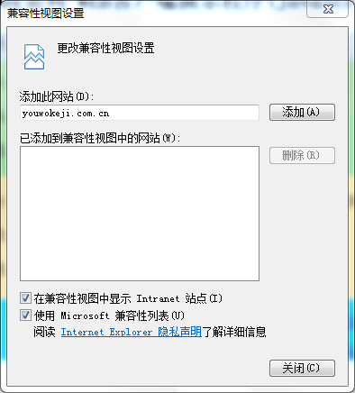 這種問題一般是由于兼容性問題導(dǎo)致,可以將當(dāng)前域名增加到IE的兼容性視圖列表中,兼容性視圖設(shè)置在菜單工具里,打開后如下圖所示: